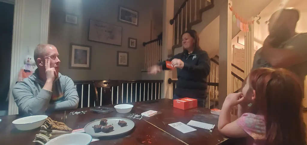 I host family game nights on a pretty regular basis, and we played One and Done at our last one. Everyone really liked it and had a lot of fun playing it. It is similar to Taboo, but you only get to give one word clue and give one correct answer. It makes it more challenging, but fun. The game says 14+, but the youngest player that played with us was 11, and she did really well. We will definitely be adding this game to our game selection on game nights.